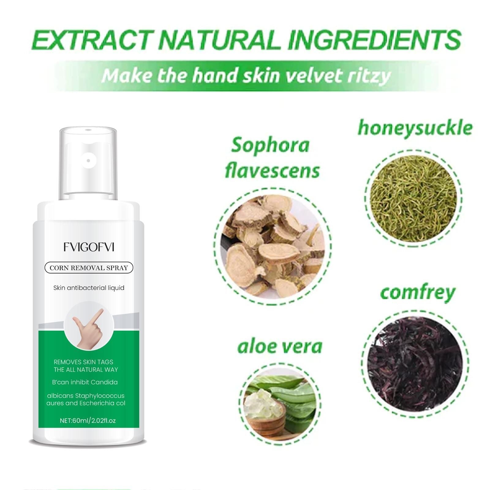 Say goodbye to painful corns and enjoy healthier, smoother skin with Fvigofvi Corn Removal Spray for Skin. This powerful antibacterial liquid is formulated with a unique blend of 25 rich ingredients to gently remove corns while providing soothing relief. Easy to apply and fast-acting, it targets stubborn corns and promotes skin healing. Ideal for those looking for an effective, convenient solution to restore comfort and confidence to their feet.